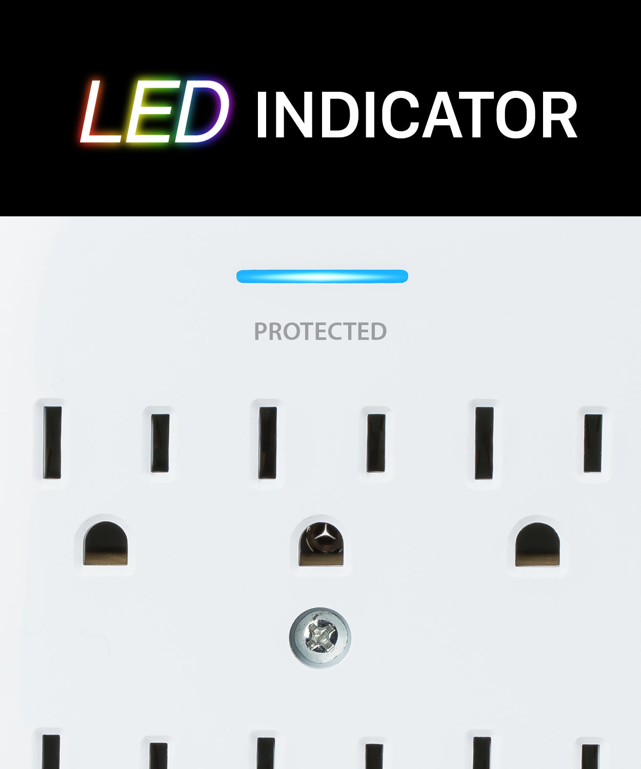 Provides 1200 joules of surge suppression to prevent voltage spikes from damaging your electronics. The Protected LED indicates that surge protection is available.