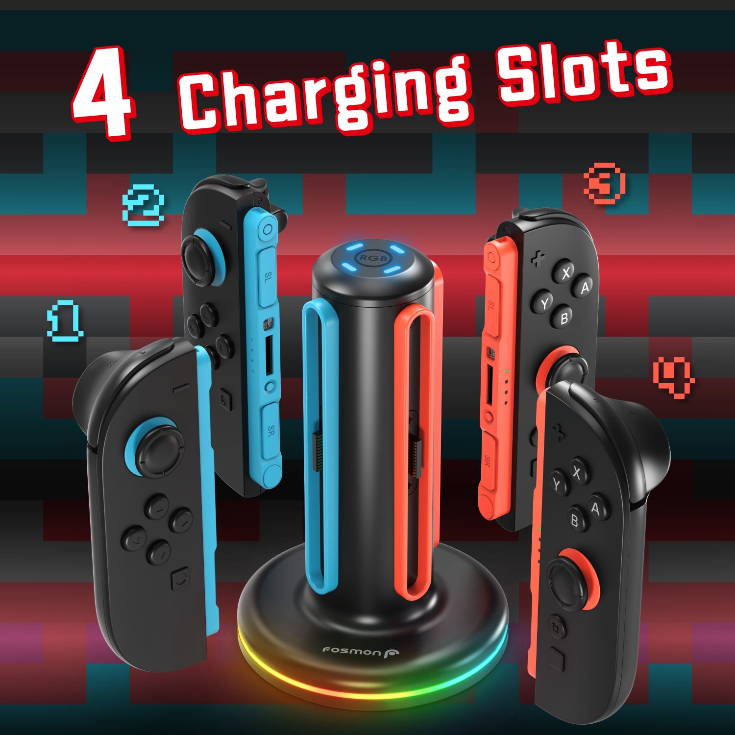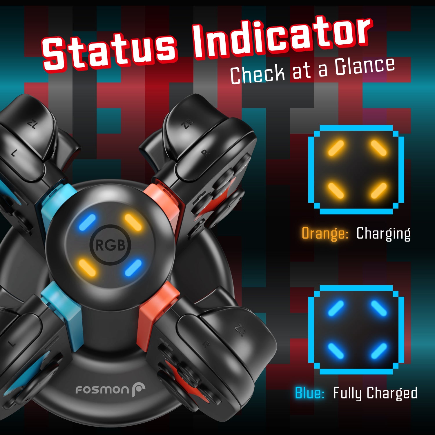 4 Magnetic Charging Slots Charge up to 4 controllers simultaneously with Fosmon’s 4-in-1 charging dock. Perfect for keeping multiple controllers ready for extended gaming sessions or party games.