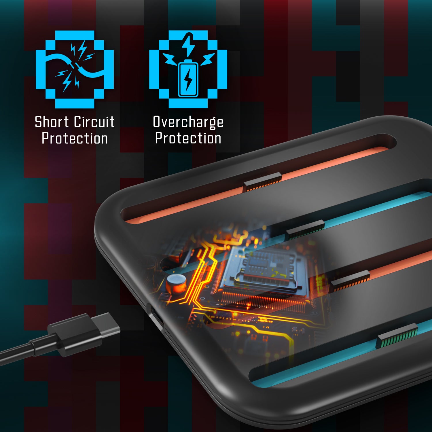 4 Magnetic Charging Slots Charge up to 4 controllers simultaneously with Fosmon’s charging hub. Perfect for keeping multiple controllers ready for extended gaming sessions or party games.