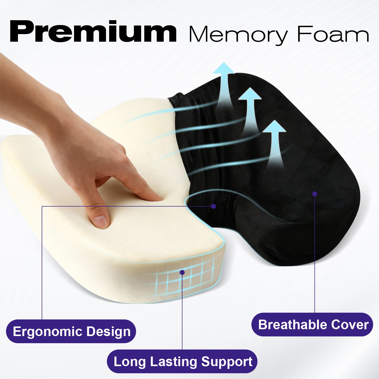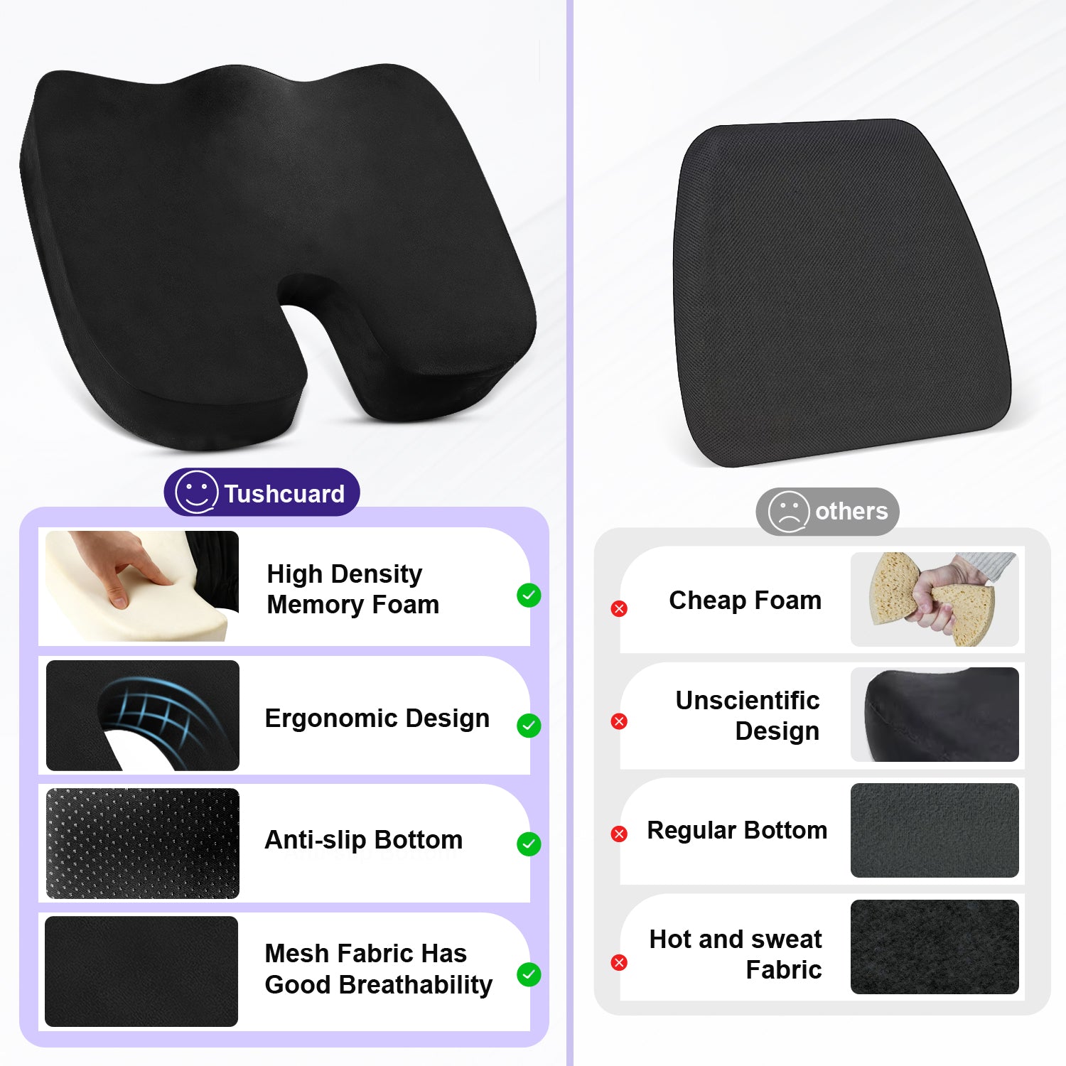The expertly designed profile promotes natural spine alignment and minimizes the impact of gravity on the spine, reducing lower back and tailbone pain from sitting on hard surfaces.