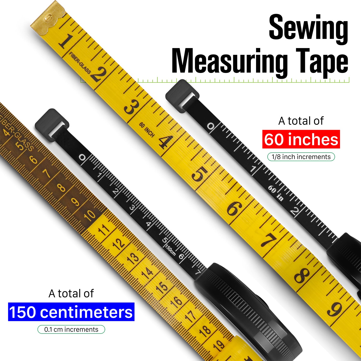 Garnen’s 2-pack measuring tape set includes a black retractable tape (60" / 150 cm) and a yellow flexible tailor tape (79" / 200 cm), providing versatile measuring options for every project. Perfect for sewing, crafting, home projects, or general measurements, this set delivers precision and convenience in one package.