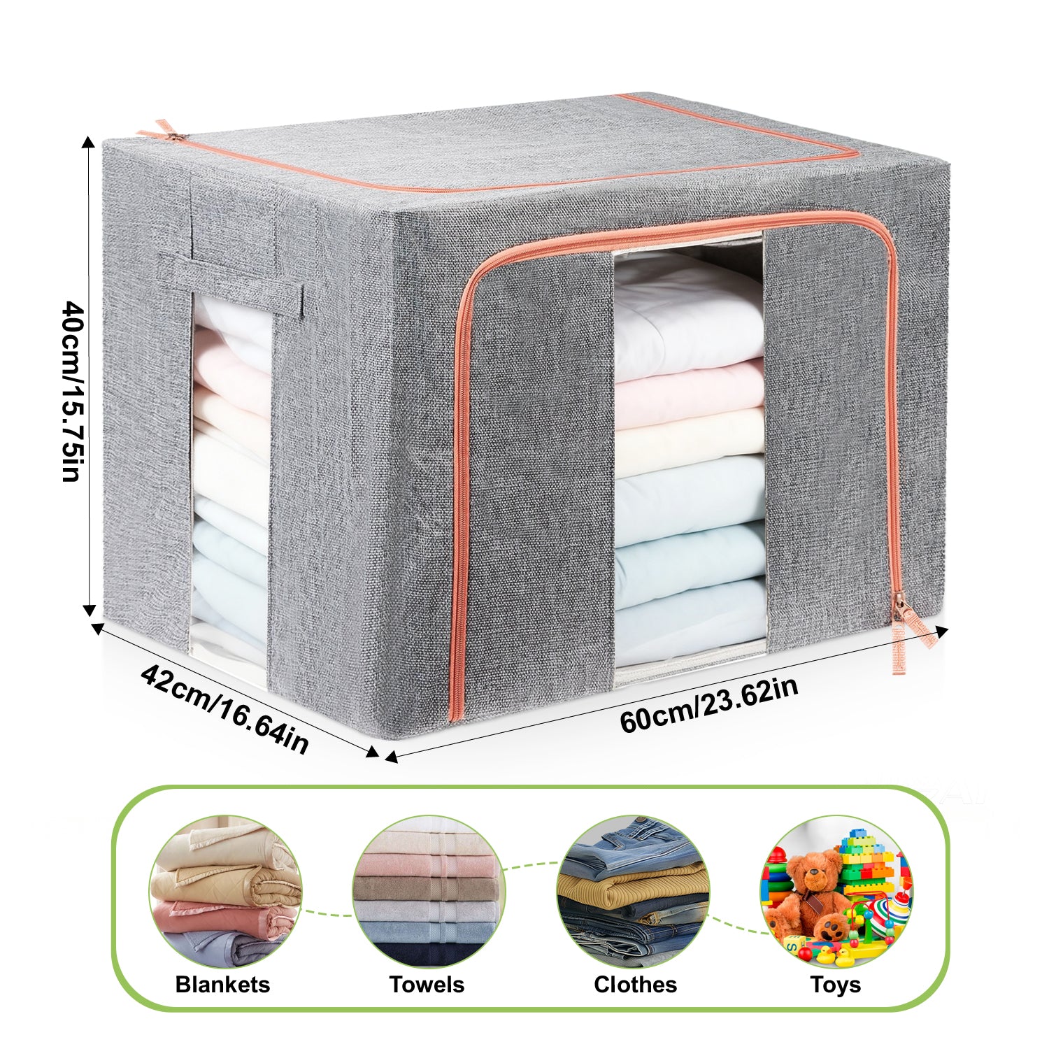 Measuring 23.62x16.64x15.75", this Garnen organizer fits neatly in closets, shelves, or wardrobes. Perfect for keeping your clothes, blankets, and accessories neatly stored while maximizing space.