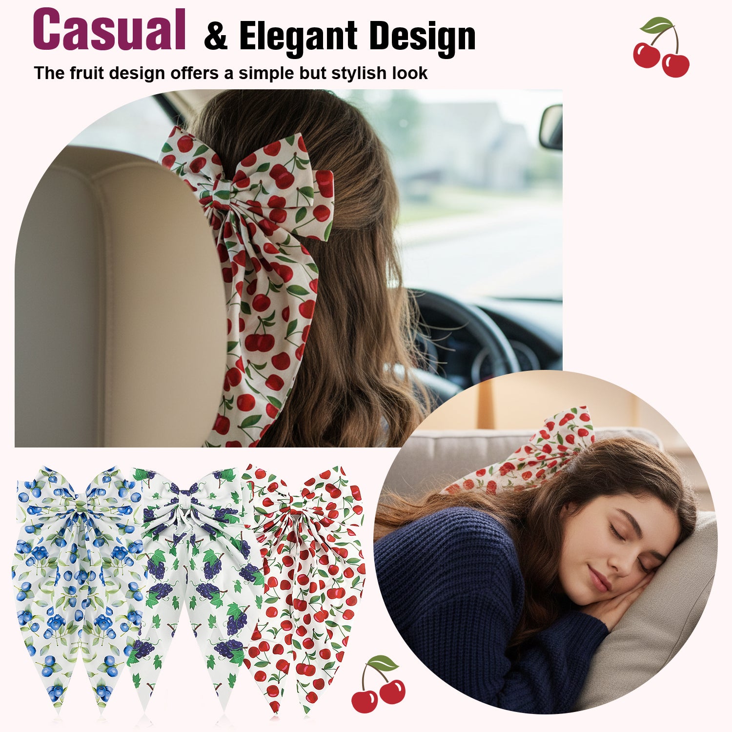 This 3-pack of fruit-themed hair bows offers multiple designs to mix and match with different outfits. From casual days at school to elegant family gatherings, the set provides versatile styling options that complement any look, making every day a fashion statement.
