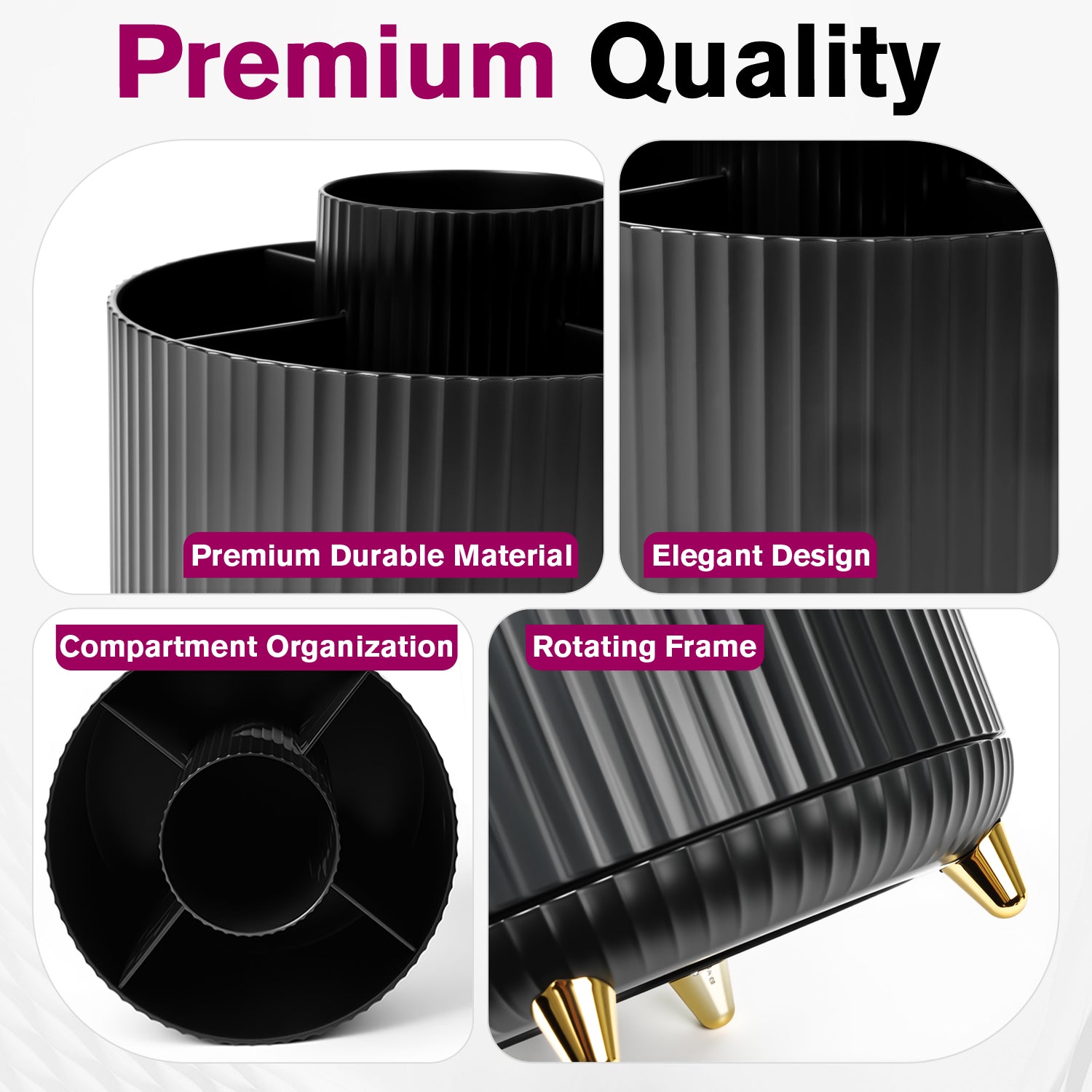 This organizer is designed to present all of your items in a highly accessible manner with a beautiful aesthetic. Simply rotate the organizer to find what you need, no more messy drawers and misplaced items.