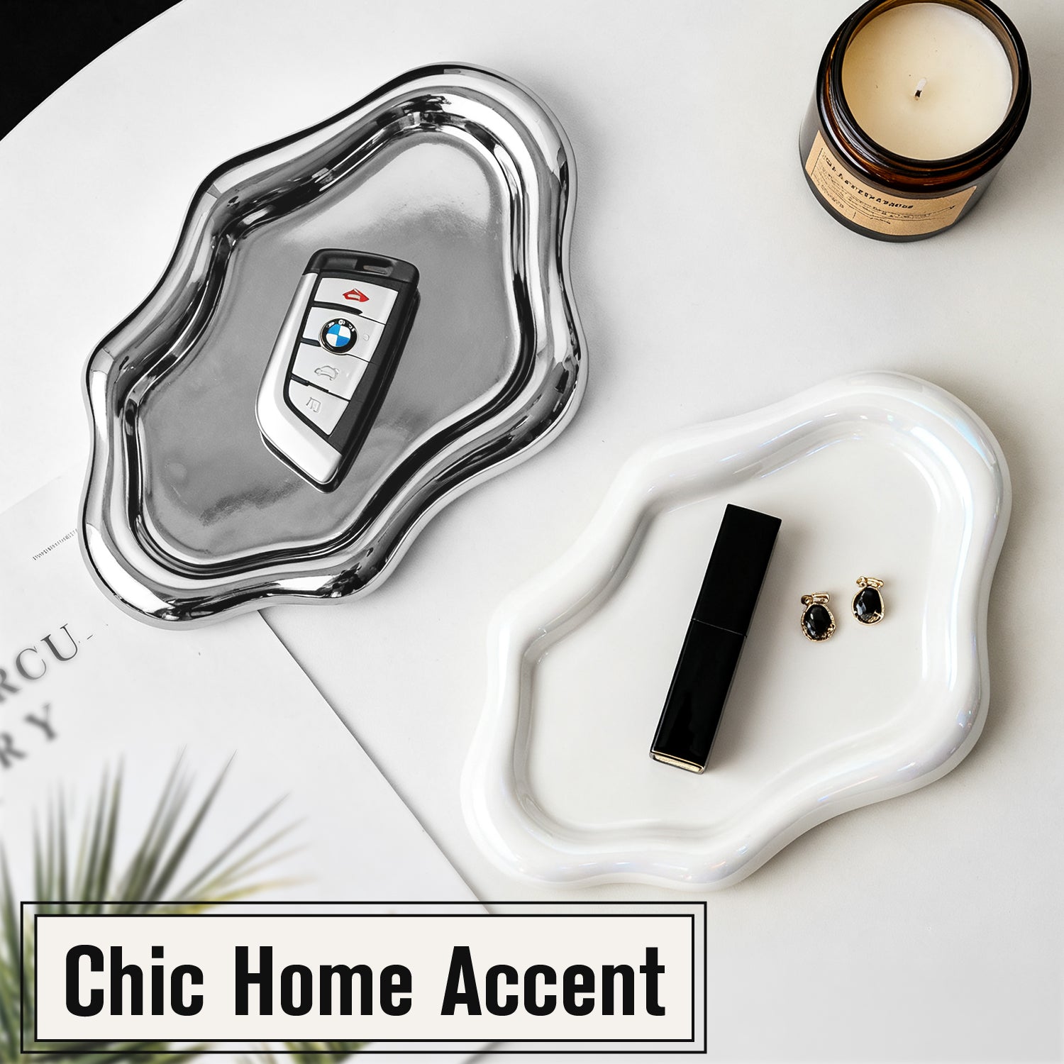 Elegant Modern Design This Mber jewelry tray is crafted from high-quality stainless steel with a pristine white finish, showcasing a distinctive organic shape. This contemporary design adds a subtle yet sophisticated touch to any room, offering a clean and artful way to display your cherished items. It’s perfect for those who appreciate understated beauty and modern aesthetics in their home decor.