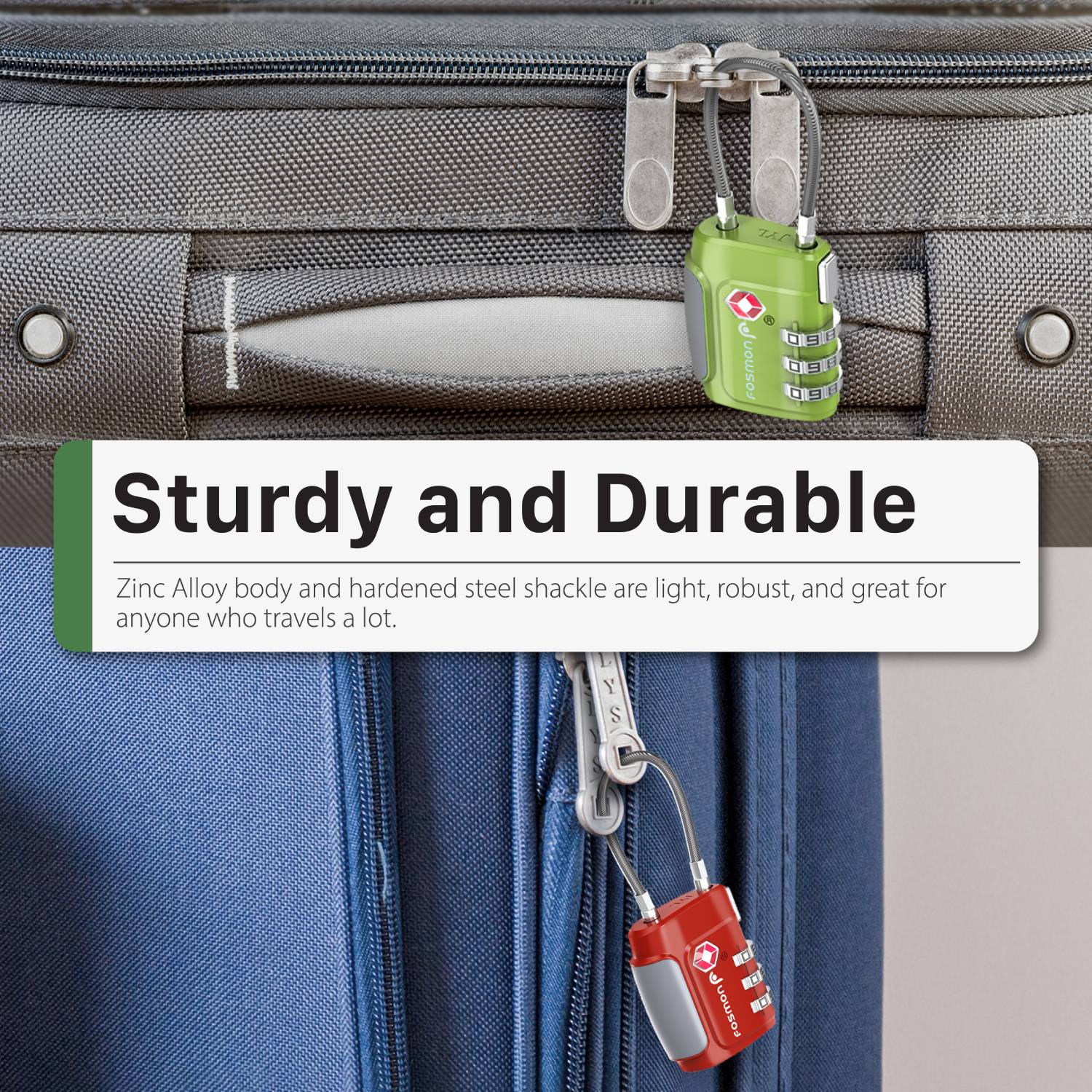 • [TSA ACCEPTED LUGGAGE LOCKS] The Fosmon TSA lock allows your luggage to be checked without damage to the lock. The TSA agent will open and relock your luggage after inspection, giving you peace of mind.