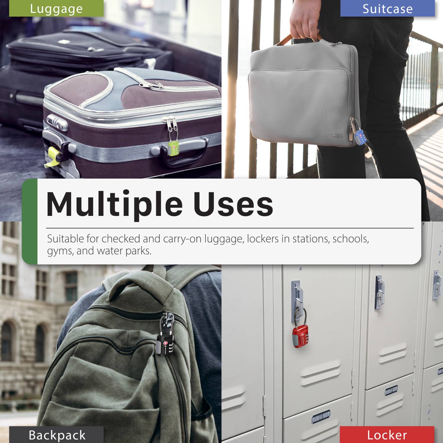 In addition to travel, this TSA accepted lock can be used for various lockers, such as hostels, gym, water parks, gun cases, etc. for safety and security.
