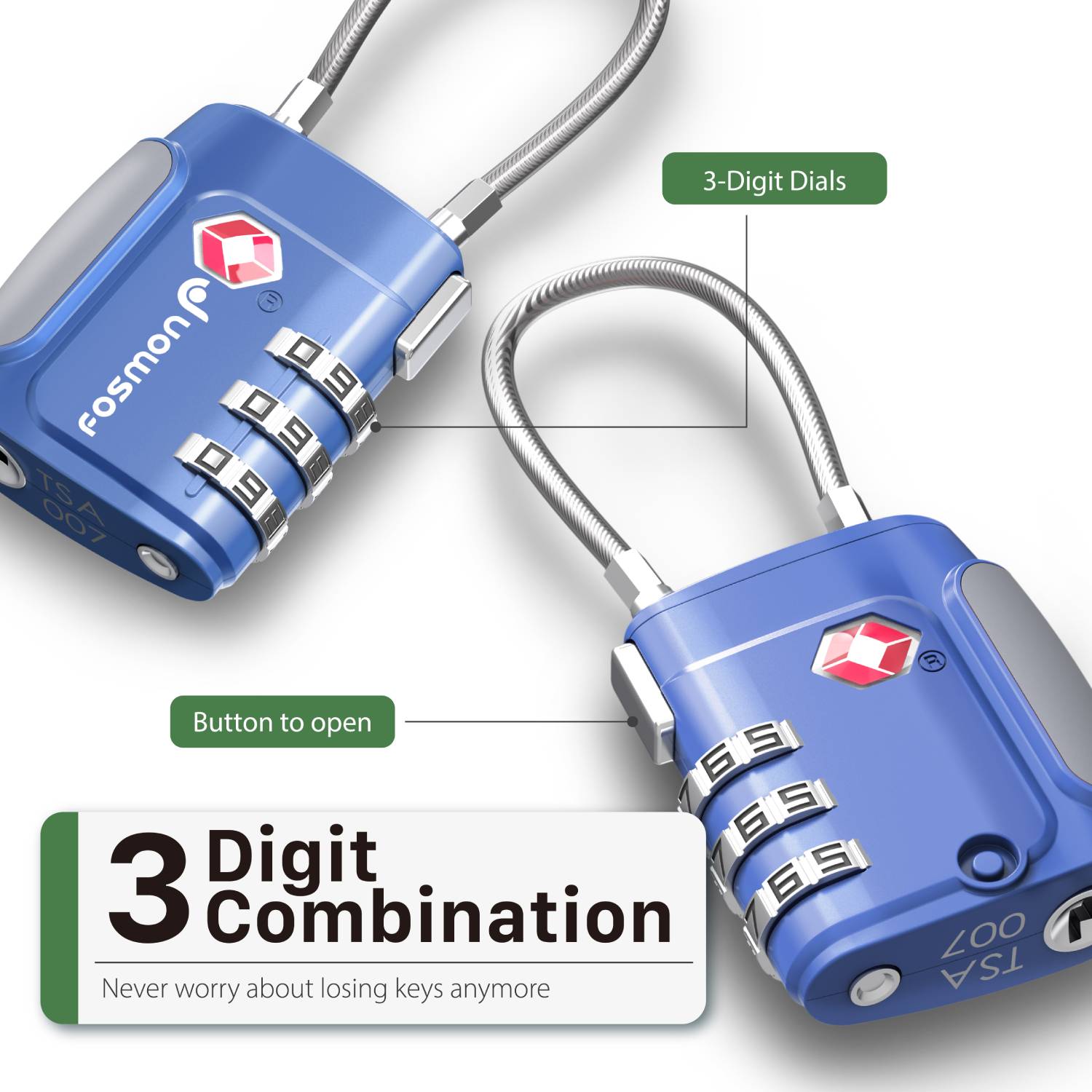 • [VERSATILE LOCKS] The lock is safe with a 3-digit combination. The release button makes it easy to unlock, and prevents accidental unlocking. The flexible cable makes it great not only for luggage, but also for backpacks, suitcases, and lockers.