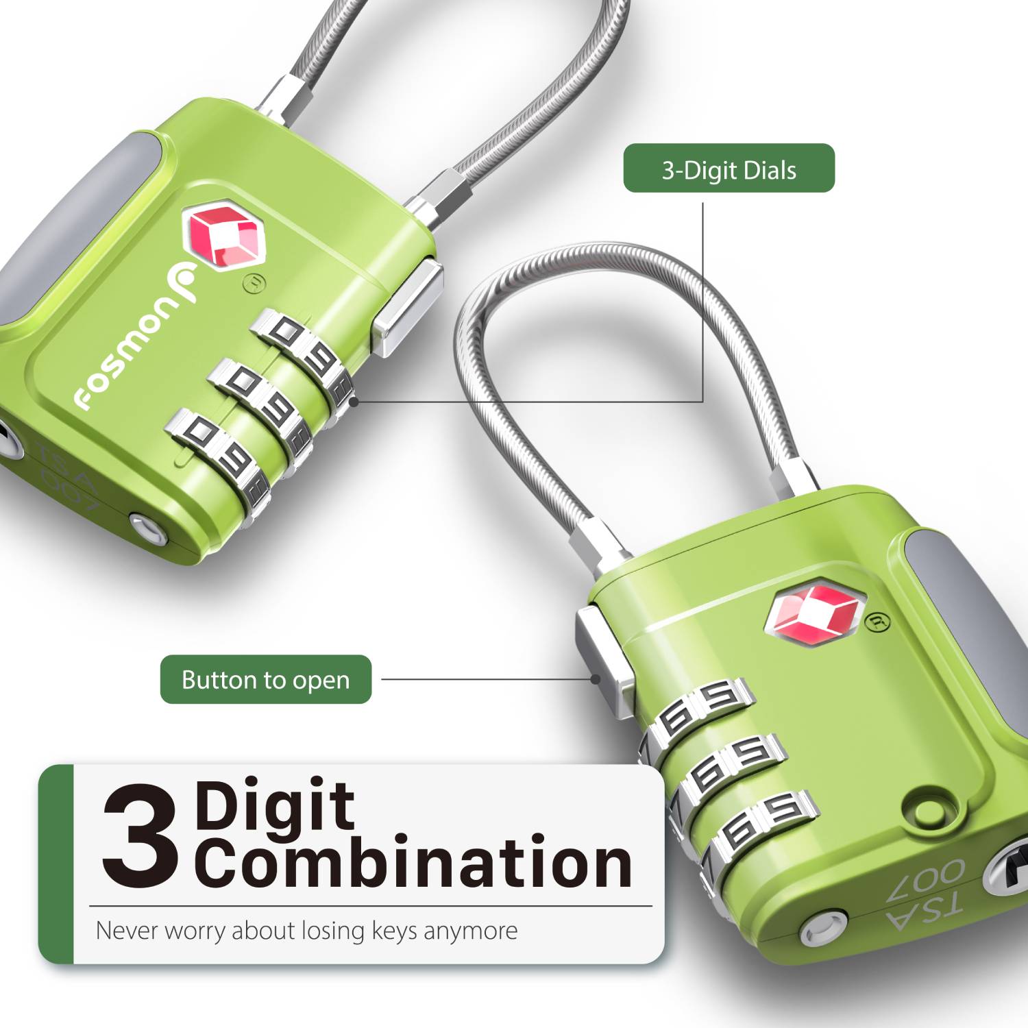 • [VERSATILE LOCKS] The lock is safe with a 3-digit combination. The release button makes it easy to unlock, and prevents accidental unlocking. The flexible cable makes it great not only for luggage, but also for backpacks, suitcases, and lockers.
