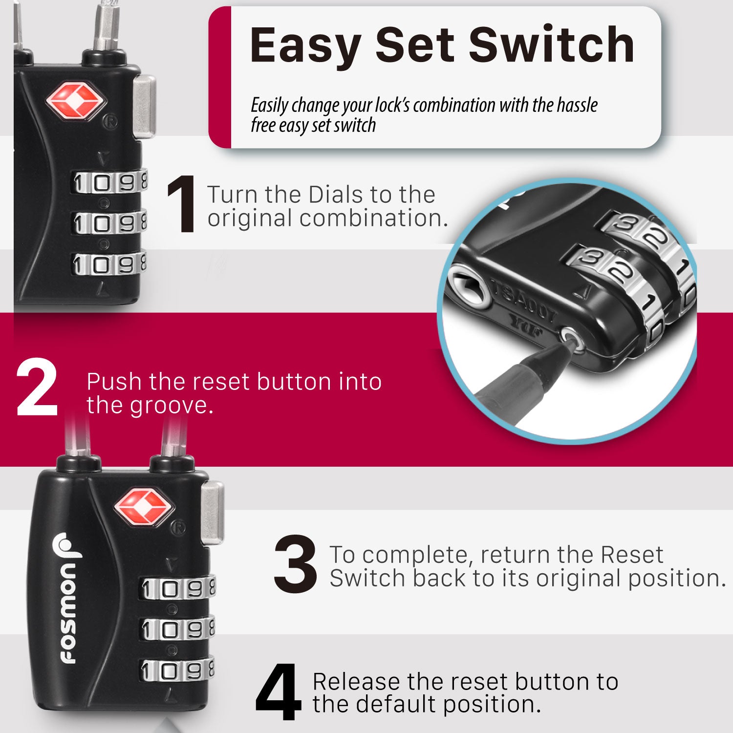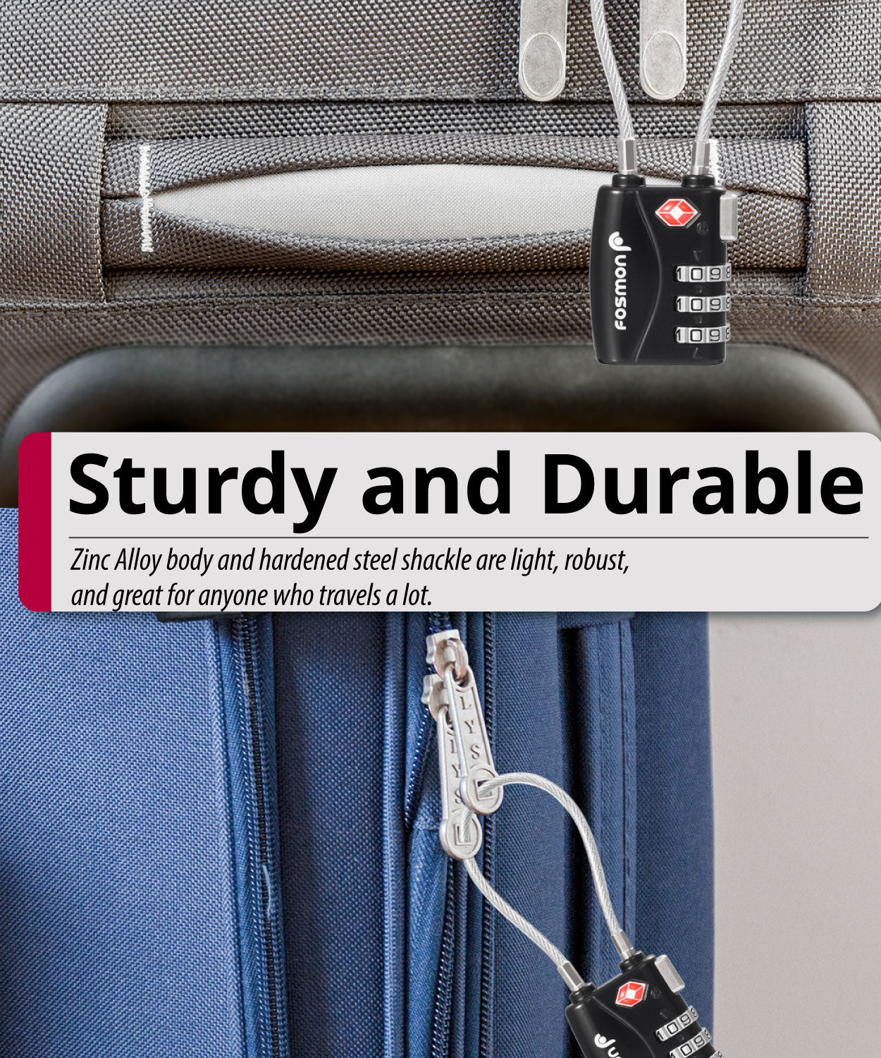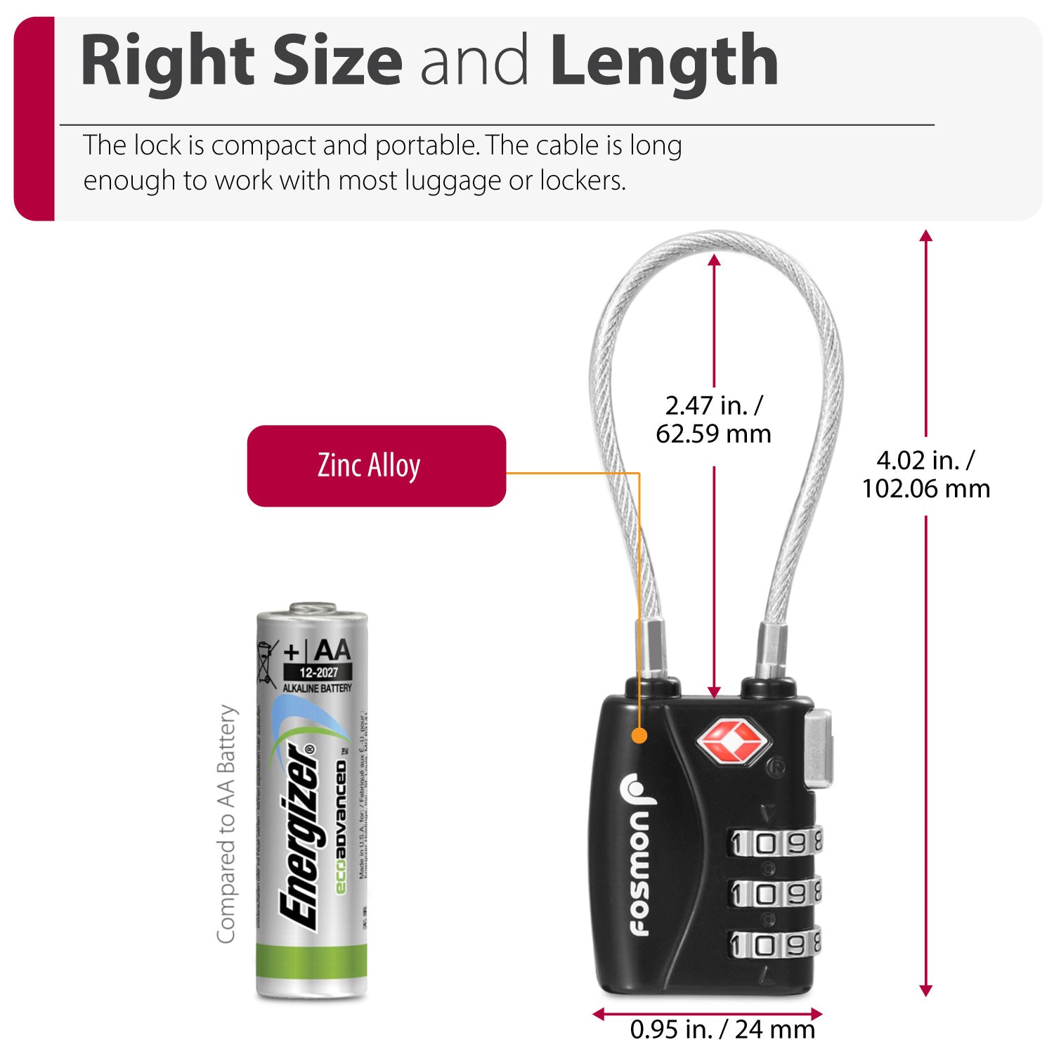 The zinc alloy body of the lock and the hardened steel shackle are light and strong, designed to withstand the rigors of baggage handling during your travel.